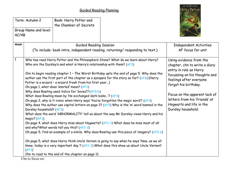 Harry Potter And The Chamber Of Secrets Guided Reading Planning Teaching Resources