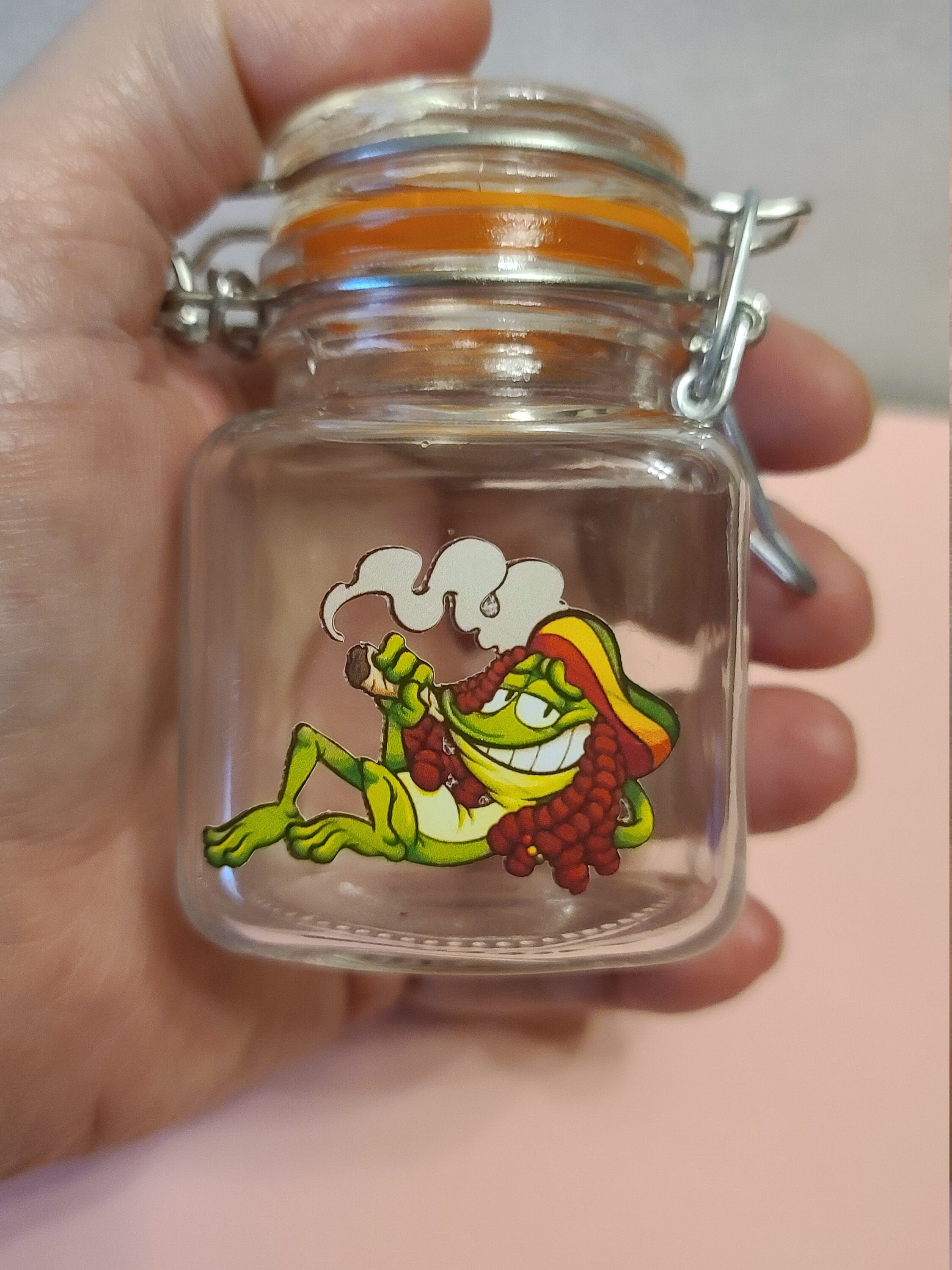 Amazon Com Airtight Glass Herb Mini Stash Jar With Clamping Lid In Choice Of Design Holy Smoke Home Kitchen