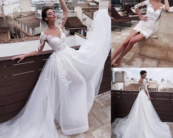 Marvelous Jewel Neckline 2 In 1 Wedding Dress With Detachable Etsy